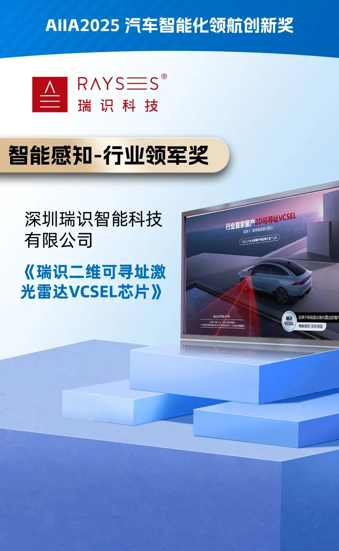 在汽车智能化浪潮中,瑞识科技始终走在前沿。公司专注于半导体光芯片研发,其高性能VCSEL芯片及光学集成产品,为智能驾驶提供了关键技术支持。此次获奖,不仅是对瑞识科技在智能感知领域技术实力的高度认可,也彰显了其在推动汽车智能化发展中的行业领军地位。